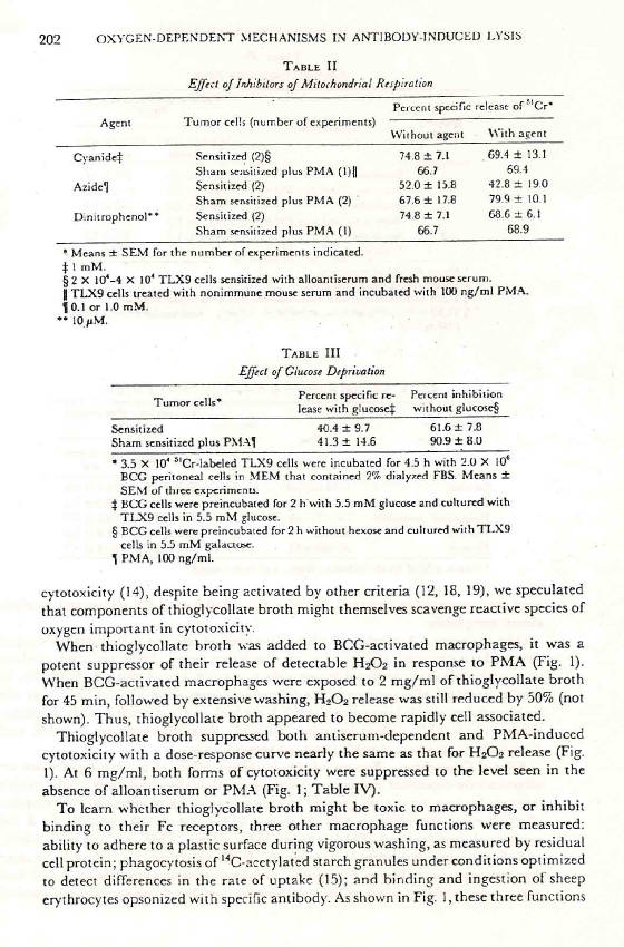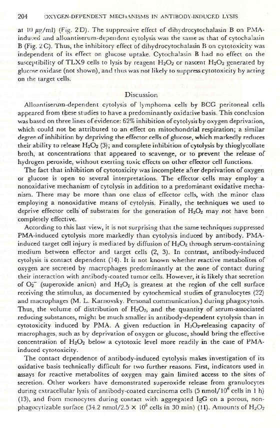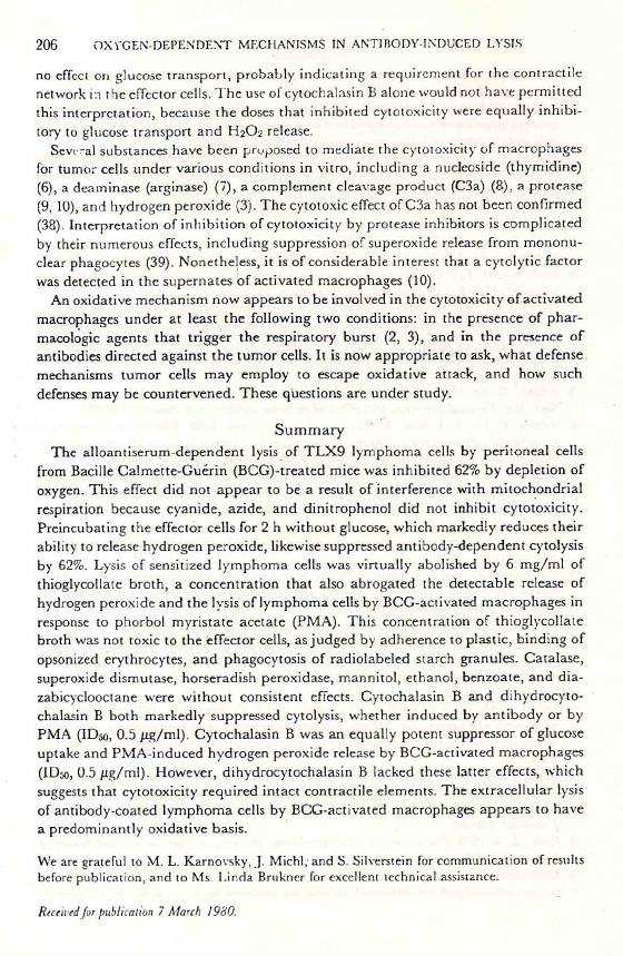 reactive metabolites of oxygen during interaction with antibody-coated tumor cells. The... lysis of... lymphoma cells...was
